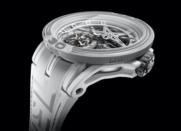 From case to skeleton, bracelet, and iconic astral signature, the Excalibur Spider Pirelli MT is dressed in stunning white. A first for a timepiece from the Excalibur Spider Pirelli collection, the shade was chosen specifically to stand out and honor the significance of Pirelli’s landmark occasion.